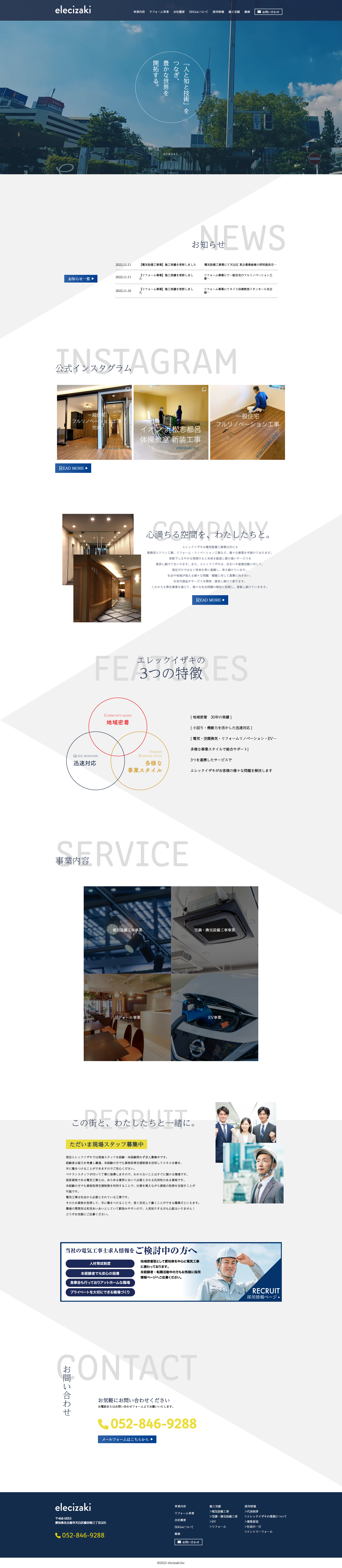 名古屋市天白区にて電気工事事業をしている、株式会社エレックイザキ様のホームページをリニューアルさせていただきました。