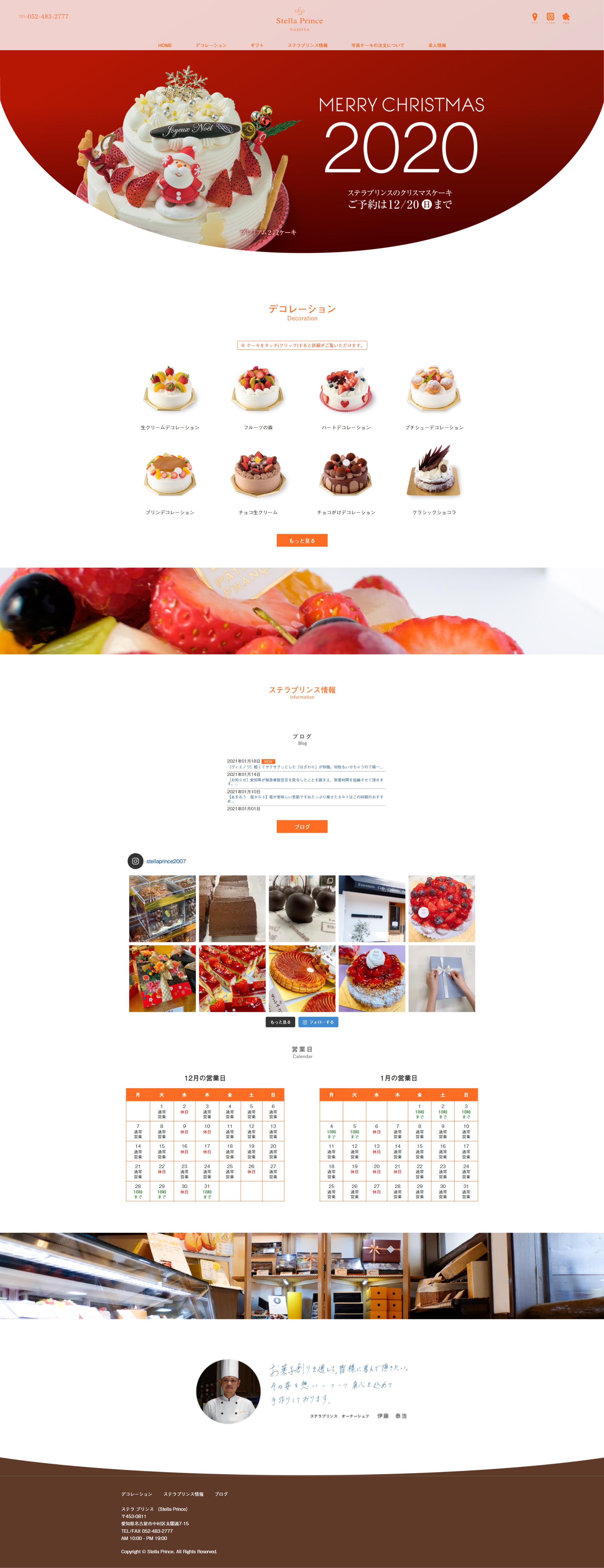 Stella Prince様の魅力を伝えられるよう、ホールケーキをメインにプチガトーや焼き菓子、豊富なラインナップを各カテゴリごとに実際に写真で見て感じて頂けるようなページを目指しました。